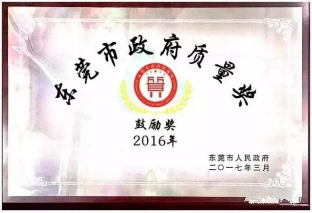 圖:東莞市政府質(zhì)量獎(jiǎng)鼓勵(lì)獎(jiǎng)