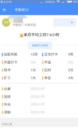 5、在統(tǒng)計(jì)界面也可以看到自己的考勤情況