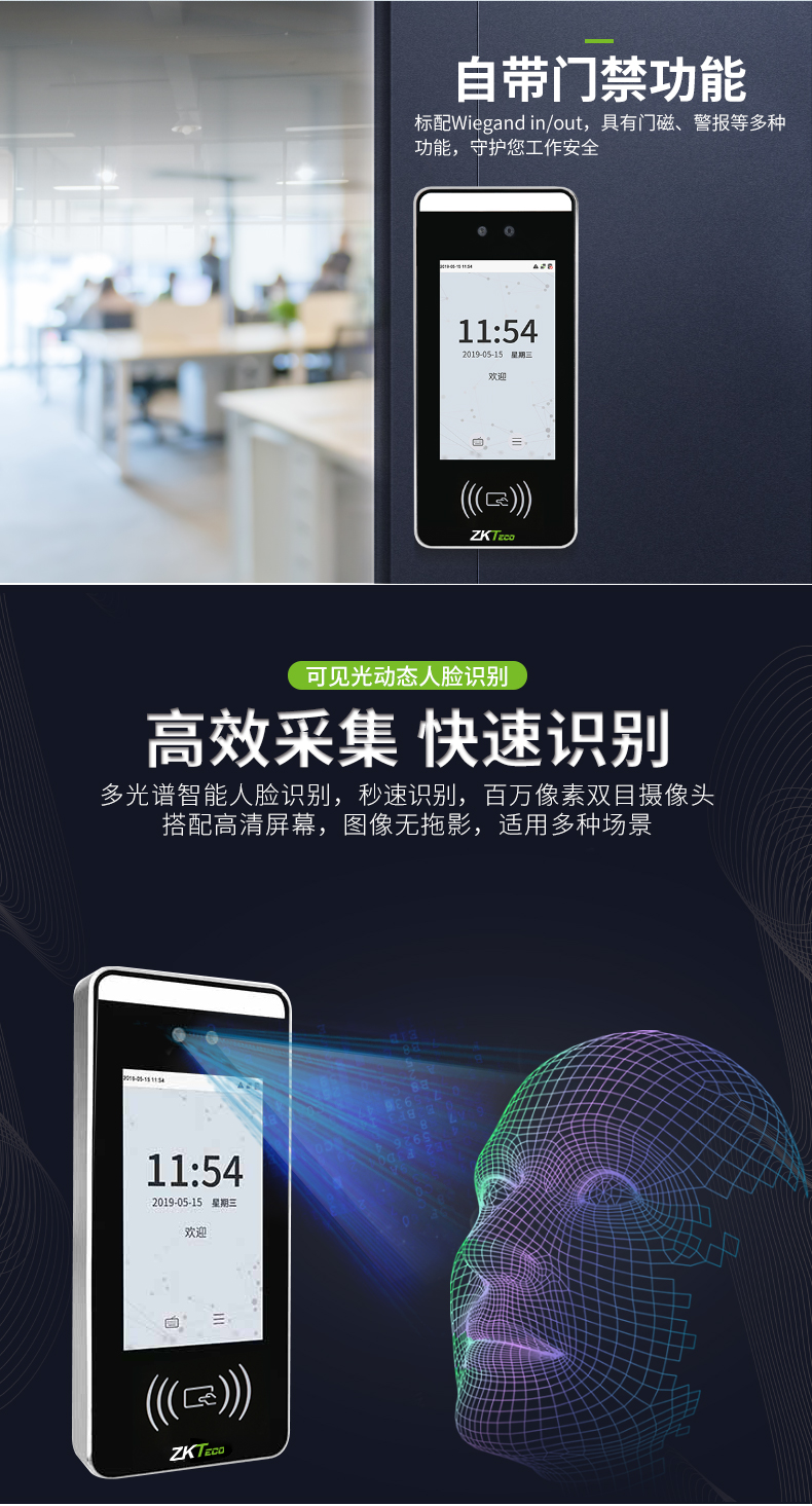 百萬像素雙目攝像頭搭配高清屏幕,圖像無拖影,快速識別